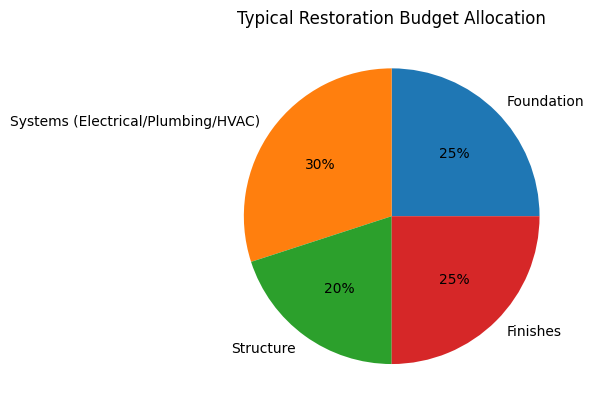 $100,000 covers moderate restoration on smaller homes (under 1,500 square feet) without major structural issues, or allows focused work on critical systems in larger properties. This budget handles new electrical, plumbing, HVAC, kitchen, and bathroom updates in average-condition homes. However, properties needing foundation repair, extensive structural work, or complete system replacements often exceed this amount. The budget adequacy depends heavily on home size, condition, location, and finish level expectations.