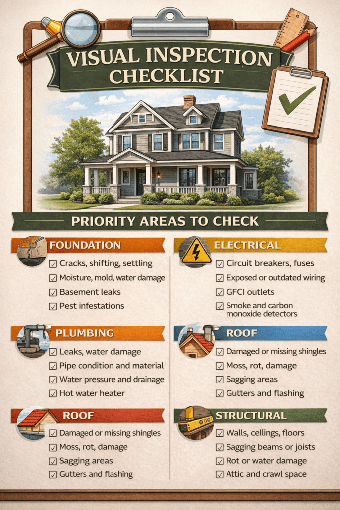Foundation assessments identify cracks, settling, moisture intrusion, and structural compromises. Old homes commonly experience foundation issues due to age, soil changes, and outdated construction methods. Addressing these problems first prevents wasting money on cosmetic work that foundation repairs would later damage.