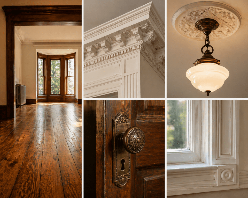 Focus preservation efforts on character-defining features visible from public spaces. Original staircases, fireplaces, millwork, and architectural details in primary rooms deserve the highest quality restoration.